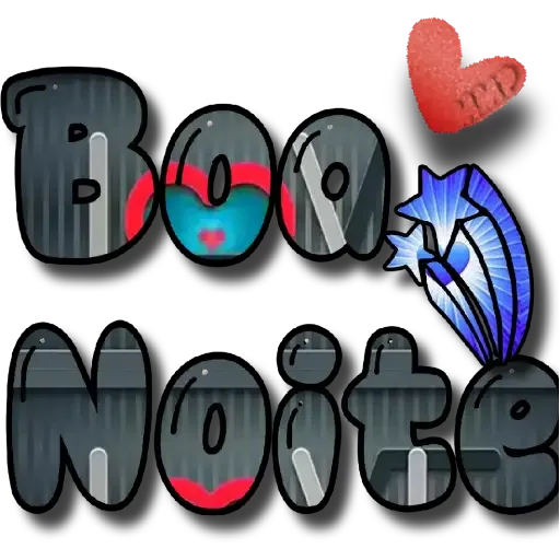 Uma figurinha de boas-noites com o texto 'Boa Noite' em letras grandes e coloridas, acompanhada de um coração vermelho e estrelas azuis.