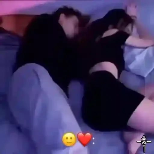 Casal abraçado na cama, com um emoji de sorriso e um coração vermelho.