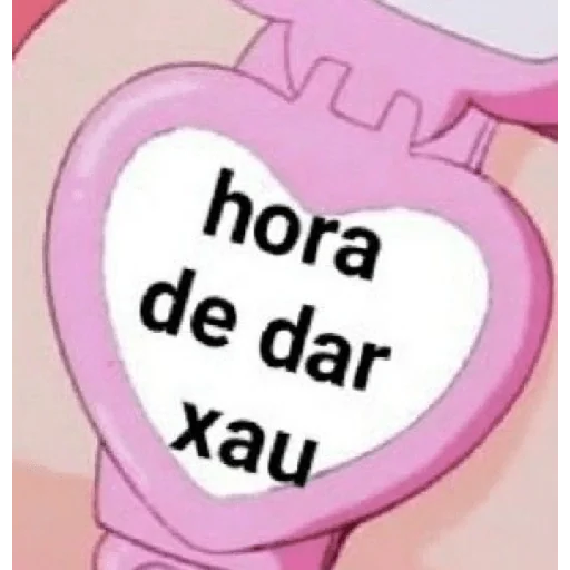Um coração rosa com um texto 'hora de dar xau' no centro.