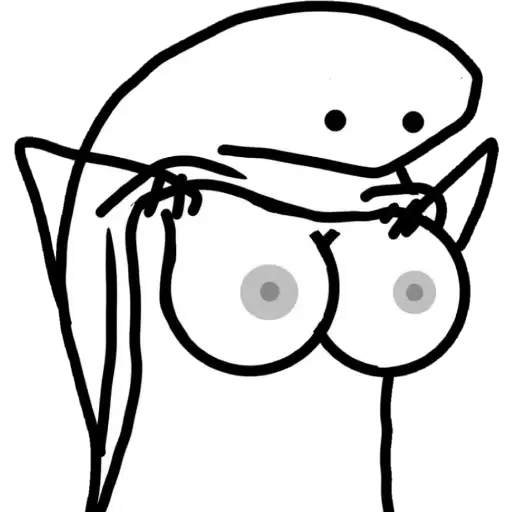 Um desenho simples de uma mulher nua com seios grandes e expressão facial indiferente.