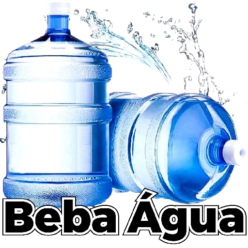 Duas garrafas de água azul com gotas de água saindo de uma delas. Abaixo, o texto 'Beba Água' em letras pretas.