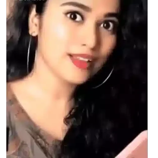 Rosto de uma jovem mulher com cabelo preto e maquiagem discreta, usando um colar e um brinco grande, com um leve sorriso.