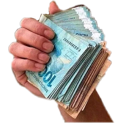 Uma mão segurando uma grande quantidade de cédulas de dinheiro, provavelmente reais brasileiros.