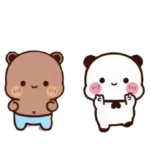 Dois ursos fofos, um castanho e um branco, com bochechas rosadas e sorrindo.