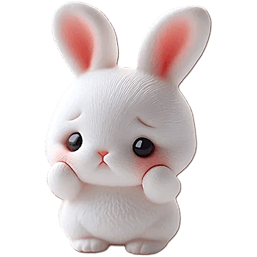 Coelho branco fofinho com orelhas grandes e olhos grandes e pretos, corado nas bochechas e orelhas.