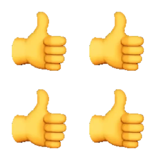 Quatro mãos amarelas com polegares para cima, dispostas em dois por dois.