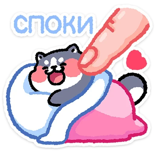 Um desenho de um animal cinza, parecido com um esquilo ou raposa, com bochechas rosadas e língua para fora, sendo acariciado por um dedo. A palavra 'споки' está escrita em azul acima.