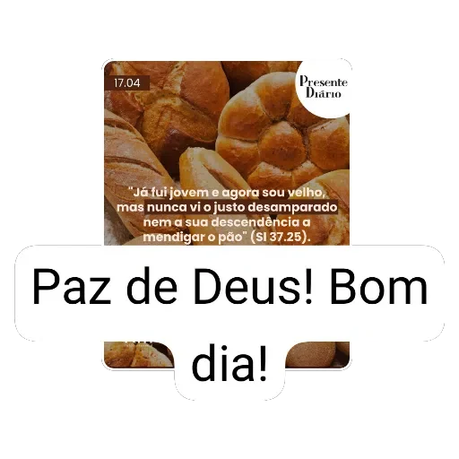 Imagem de pães com a frase 'Paz de Deus! Bom dia!' sobreposta.