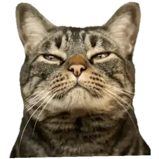 Rosto de um gato cinza com olhos estreitos e expressão séria.