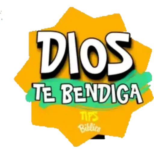 Uma figurinha com o texto 'Dios te bendiga' em letras grandes e brancas sobre um fundo amarelo com um traço verde. Abaixo do texto principal, há letras menores em amarelo e branco que dizem 'Tips Biblia'.