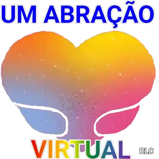 Um coração colorido com um abraço virtual, com as palavras 'UM ABRAÇÃO VIRTUAL' em letras coloridas.