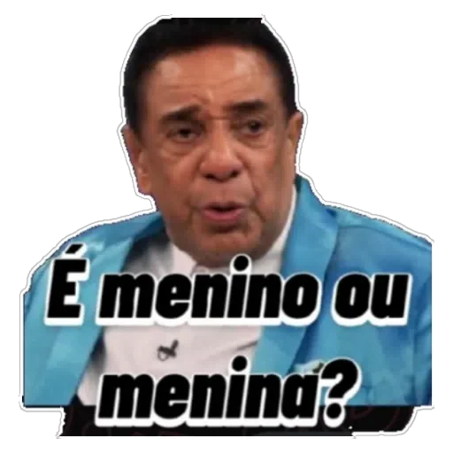 Homem de meia-idade com um blazer azul e camisa branca, fazendo uma expressão facial confusa ou surpreso, com o texto "É menino ou menina?" sobreposto.