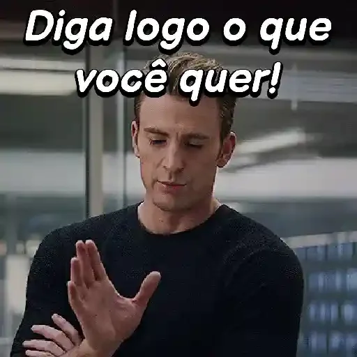 Homem de camisa preta fazendo um gesto com as mãos e dizendo 'Diga logo o que você quer!'