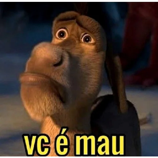Um personagem de desenho animado com expressão surpresa e focinho alongado, com texto 'vc é mau' em amarelo.