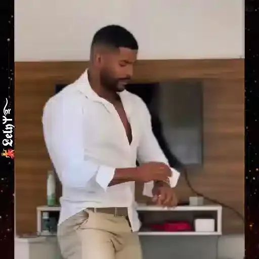Homem de meia idade com cabelo curto e barba, vestido com camisa branca e calça bege, olhando para baixo enquanto ajusta algo em seu pulso.