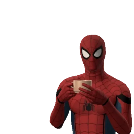 Homem-Aranha usando um celular, com expressão séria e olhos arregalados, em um fundo branco.
