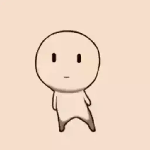 Um personagem de desenho animado com corpo simples e rosto redondo, expressando uma cara neutra ou ligeiramente triste.