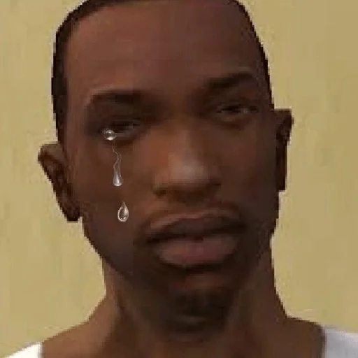 Rosto de homem com lágrima no olho direito e expressão triste, fundo bege.