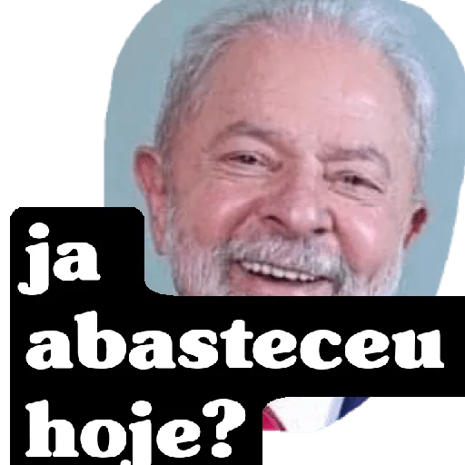 Um homem mais velho com cabelo e bigode grisalhos sorri e tem um texto em preto que diz 'ja abasteceu hoje?'