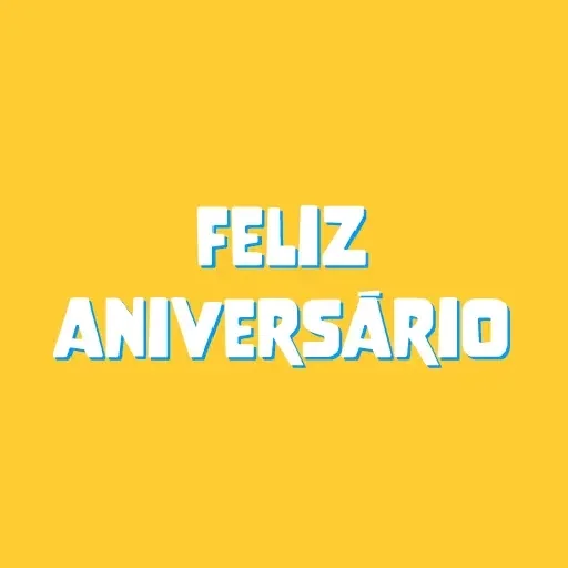Um fundo amarelo com o texto 'Feliz Aniversário' em letras brancas com sombra azul.