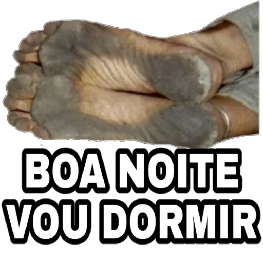 Pés sujos com texto 'BOA NOITE VOU DORMIR' em letras grandes e brancas.