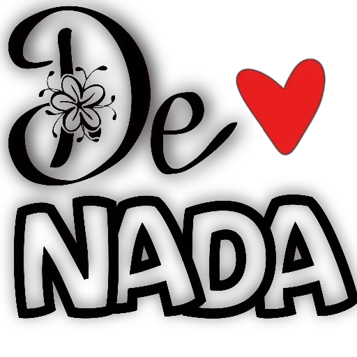 Um coração vermelho e as palavras 'De NADA' com decoração floral na letra 'D'.