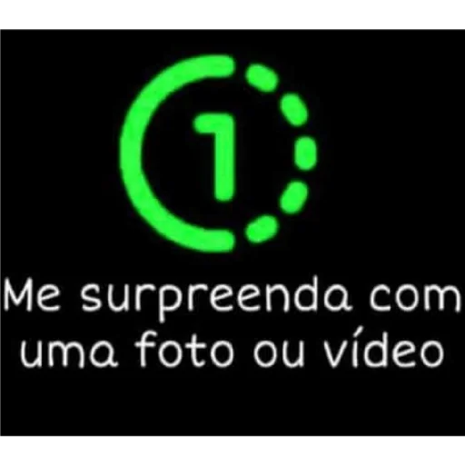 Um círculo verde com um número 1 no centro e texto 'Me surpreenda com uma foto ou vídeo' em branco.