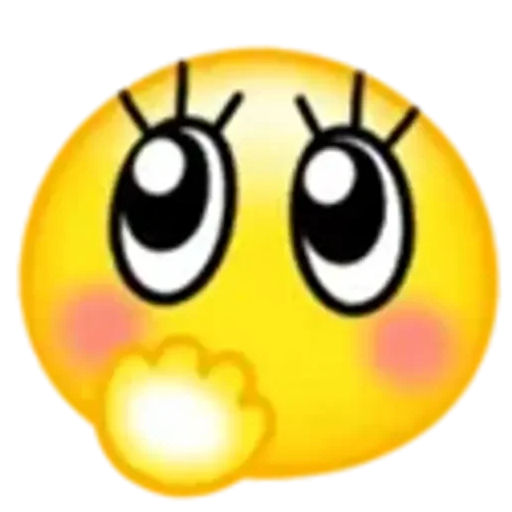 Rosto de emoji amarelo com olhos grandes e mão na boca, bochechas rosadas.