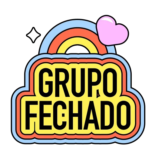 Um arco-íris colorido com um coração rosa e o texto 'GRUPO FECHADO' em letras pretas sobre um fundo amarelo.