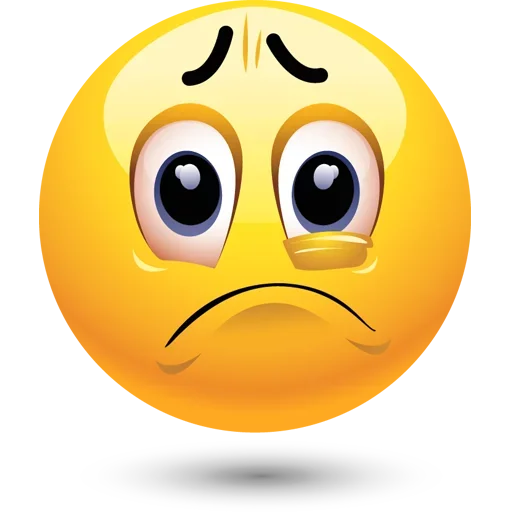 Rosto de emoji amarelo com expressão de surpresa e preocupação, olhos arregalados e sobrancelhas franzidas.