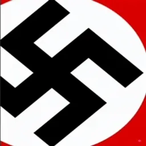 Símbolo nazista, cruz gamada preta em fundo branco e vermelho.
