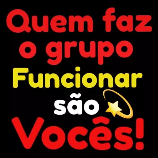 Um texto colorido em fundo preto. As palavras 'Quem faz o grupo funcionar são Vocês!' aparecem em vermelho, amarelo, branco e vermelho novamente.