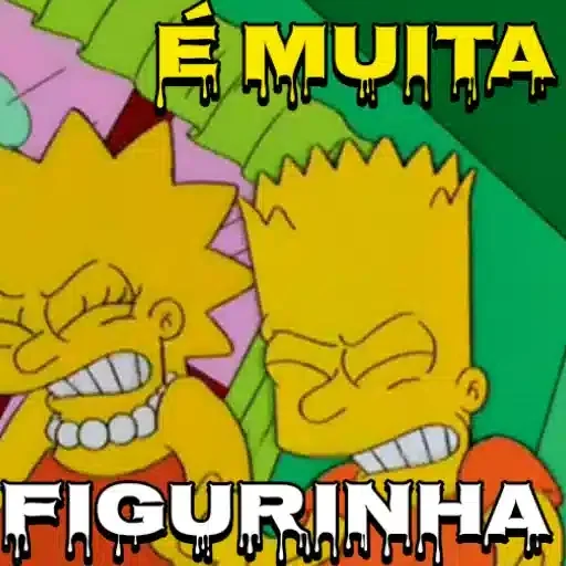 Dois personagens dos Simpsons com expressões de dor ou nojo, texto 'É muita figurinha' em destaque.