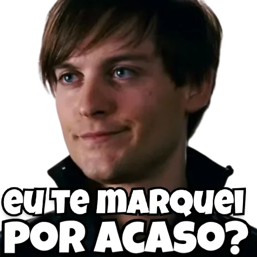 Um homem com cabelo castanho e olhar surpreso, com o texto "eu te marquei por acaso?" sobreposto.