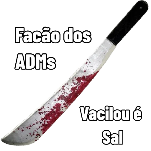 Uma faca com sangue e cabo preto, com o texto 'Facão dos ADMs Vacilou é Sai'.