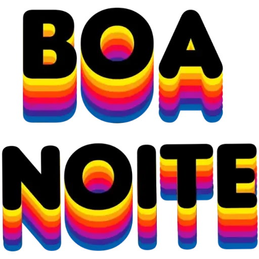 Um sticker com a frase 'BOA NOITE' em letras grandes e coloridas, com efeito de dégradé de cores.