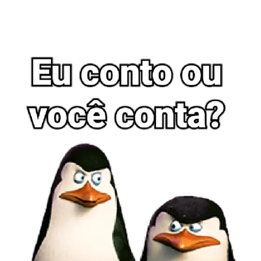 Dois pinguins, um com as asas levantadas e o outro com a cabeça inclinada, contra um fundo azul.