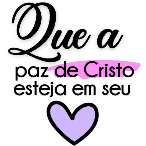 Uma figurinha com texto 'Que a paz de Cristo esteja em seu' e um coração roxo.