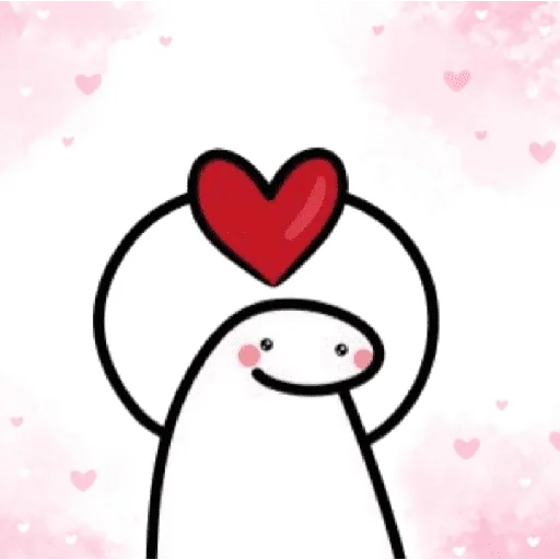 Um desenho simples de uma figura com um coração vermelho acima da cabeça, fundo rosa com corações.