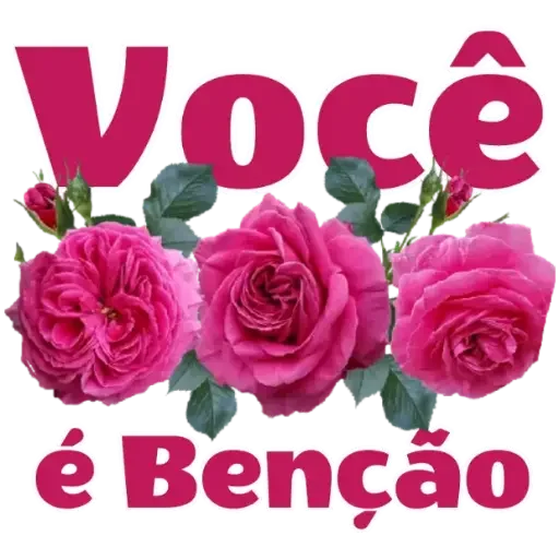 Três rosas pink com folhas verdes e o texto 'Você é Bênção' em letras grandes e rosadas.