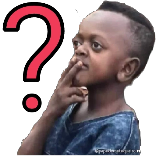 Menino pensativo com uma marca de interrogação grande ao lado, parecendo questionar ou refletir sobre algo.
