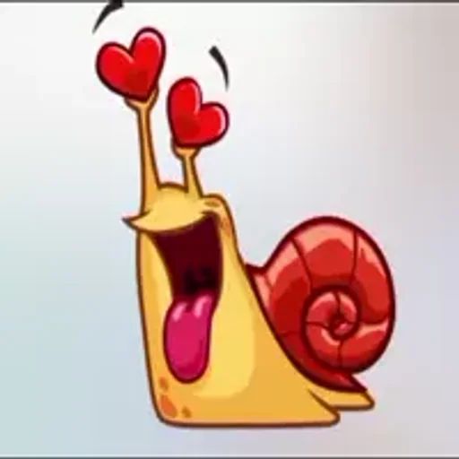Caracol amarelo com expressão de surpresa e amor, tendo dois corações vermelhos saindo de sua cabeça.