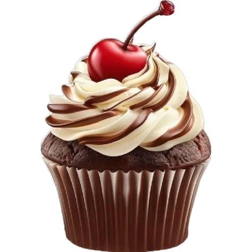 Um cupcake de chocolate com cobertura de creme e cereja vermelha em cima.