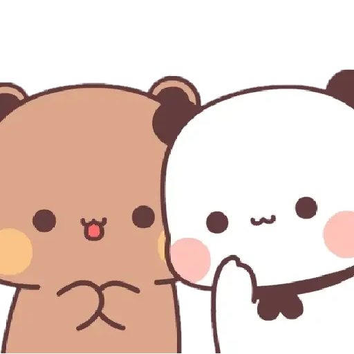 Dois animais fofos, um castanho e um branco, com expressões fofas e bochechas rosadas.
