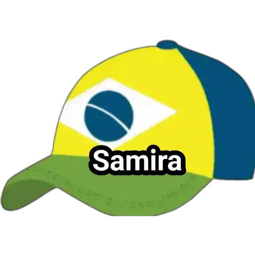 Uma camisa de beisebol com as cores do Brasil e o nome 'Samira' embaixo do símbolo.