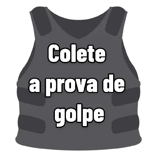 Um colete cinza com faixas pretas e o texto 'Colete a prova de golpe' em letras brancas.