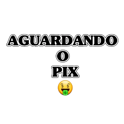 Um sticker com o texto 'AGUARDANDO O PIX' em letras grandes e pretas, com um emoji de uma cara amarela com saliva verde.