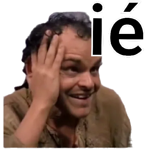 Homem com a mão na testa e expressão de surpresa ou incredulidade, com o texto 'ié' ao lado.