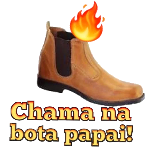 Bota de couro castanha com chamas saindo dela. O texto 'Chama na bota papai!' aparece abaixo.