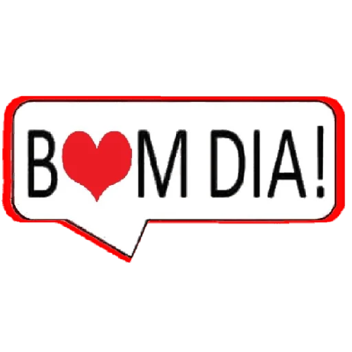 Um retângulo vermelho com um coração vermelho no lugar do 'O' na frase 'B♥M DIA!'
